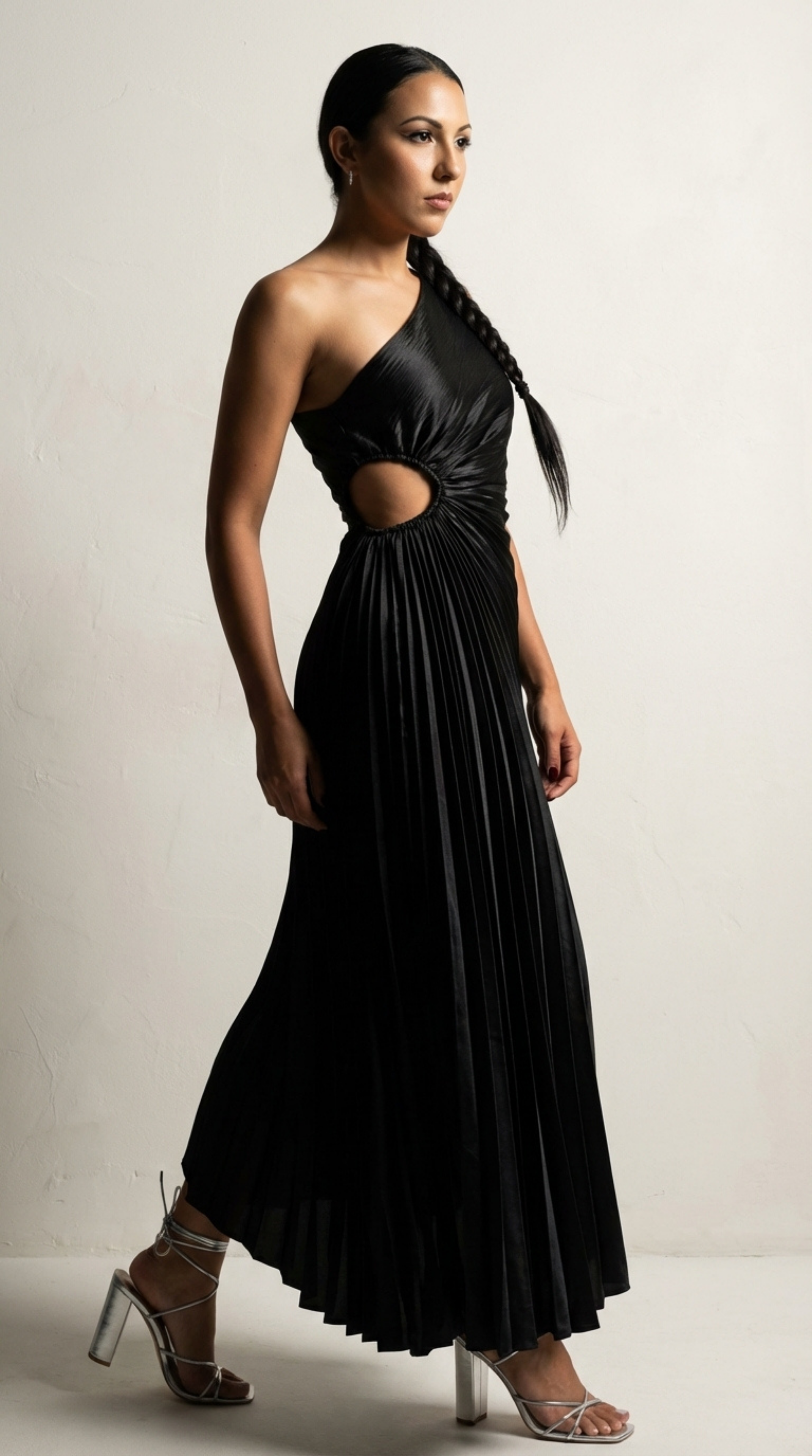 Gloria One-Shoulder Asymmetrical Dress (Black)