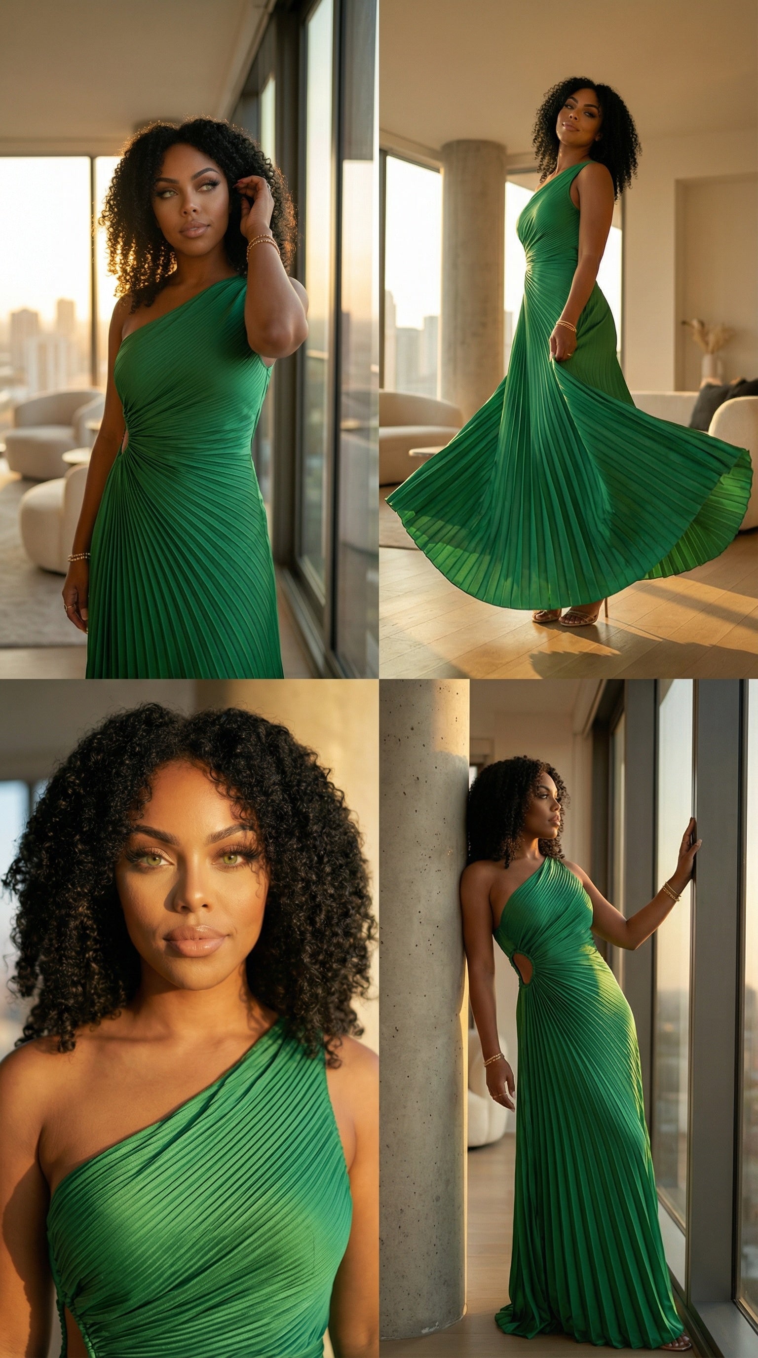 Gloria One-Shoulder Asymmetrical Dress (Green)