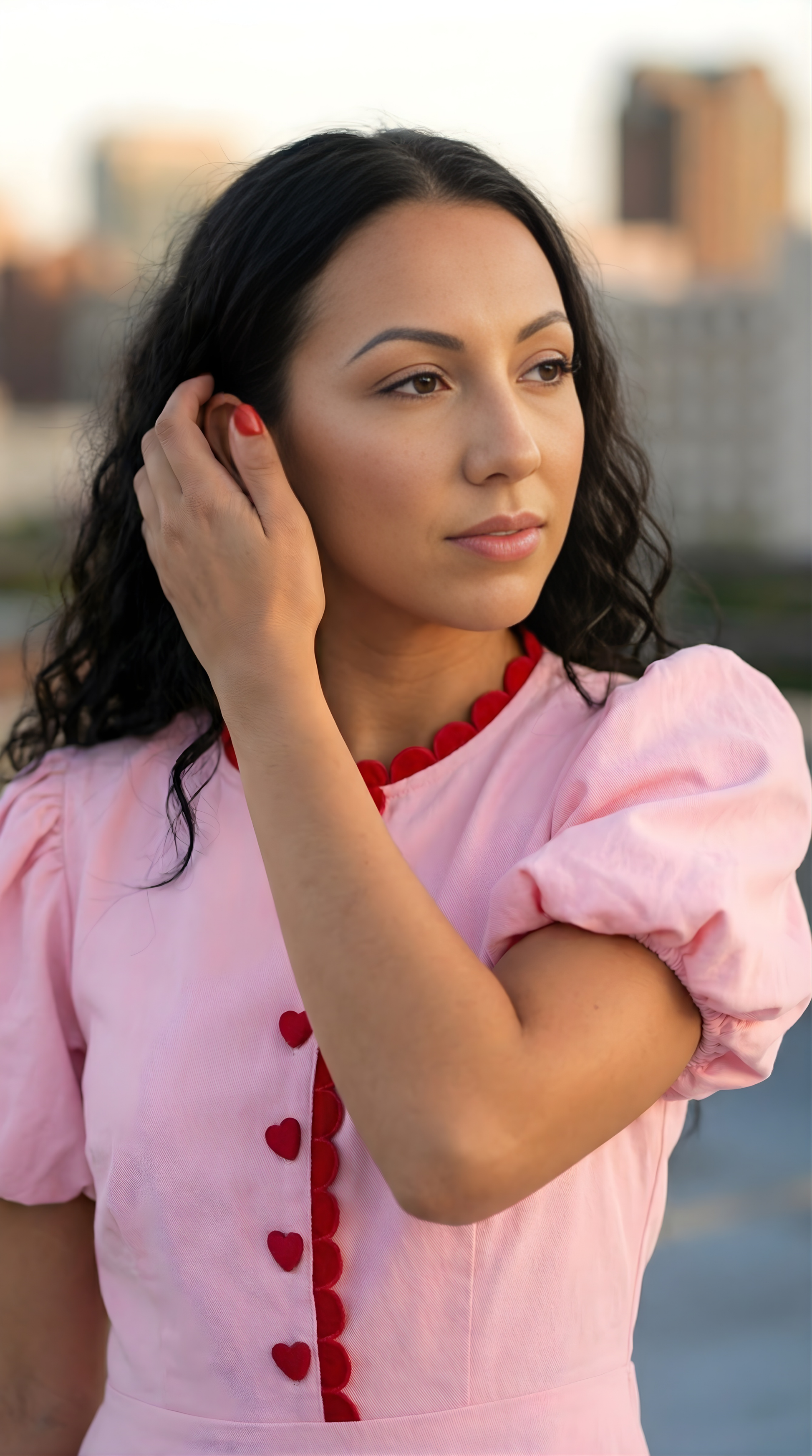 Get ready to spread some love with our Playful Penny Sweetheart Dress. Made from soft corduroy, this dress features a flirty fit and flare silhouette and playful puff sleeves. You'll fall head over heels for the red heart buttons that add a charming touch to this fun and unique dress. Tailored waist gives a tighter fit. Do not size down.